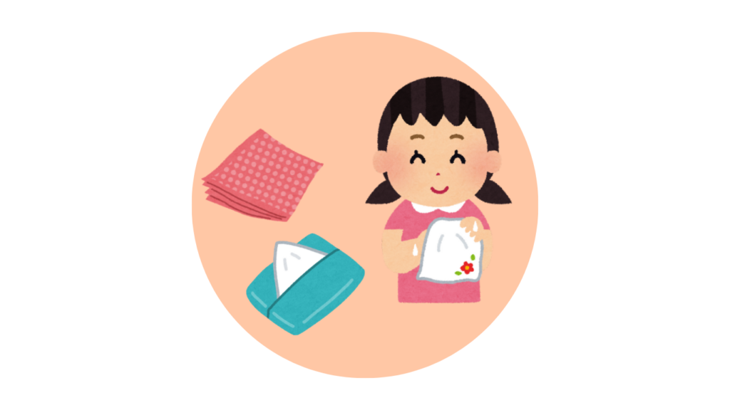 ハンカチやティッシュも、お子さんの小さな手に合わせたものを選んであげることが大切です。